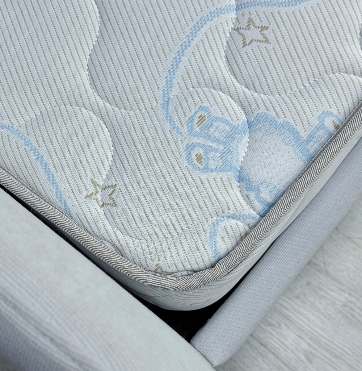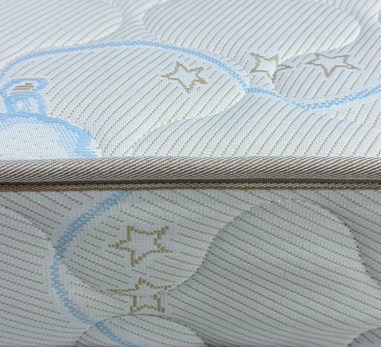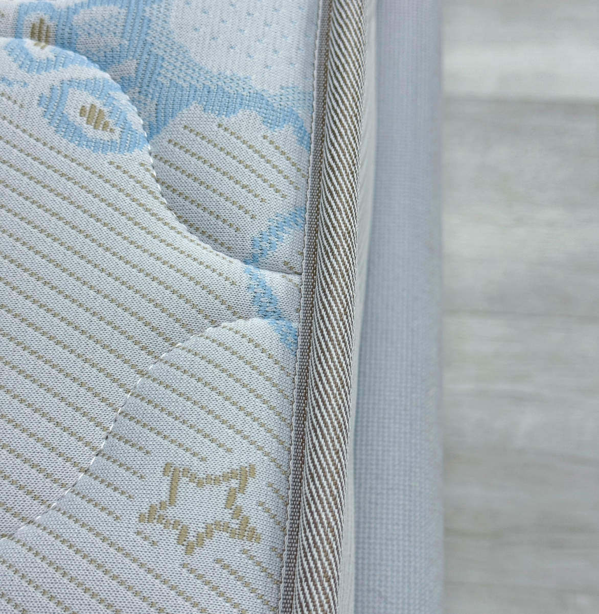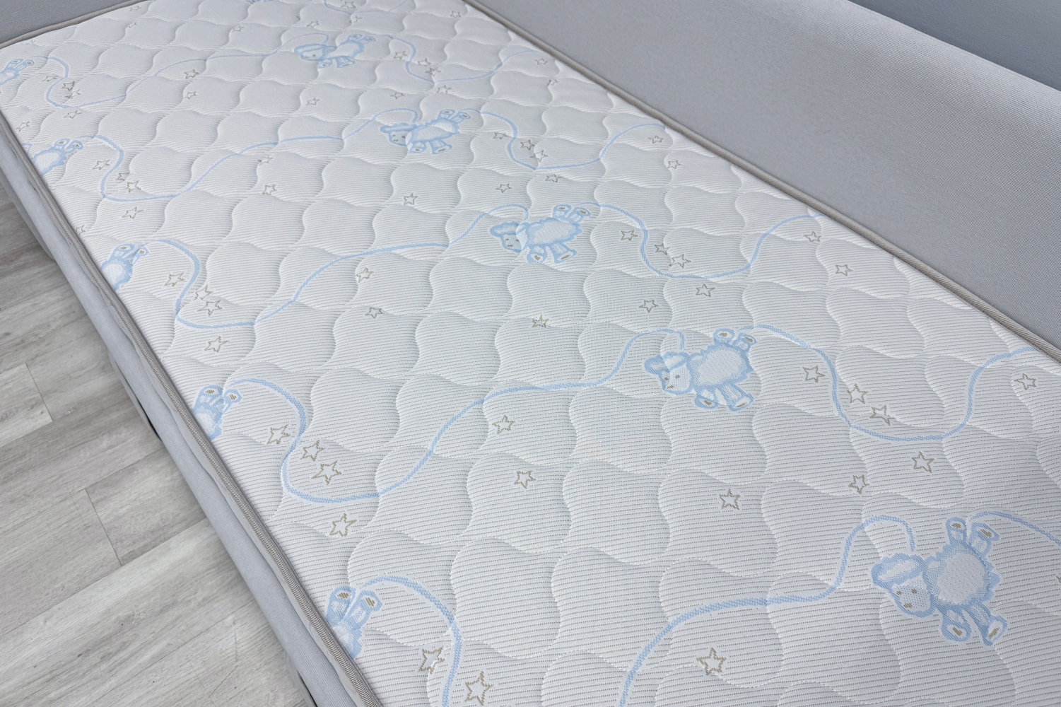 Трикотаж «Ovis» -  это мягкий, дышащий и приятный на ощупь материал, созданный специально для обеспечения максимального комфорта и безопасности ребёнка во время сна. Благодаря своей эластичной структуре ткань легко подстраивается под форму матраса, не образуя складок, а высокая износостойкость гарантирует долгий срок службы. Материал обладает хорошей воздухопроницаемостью, что помогает поддерживать оптимальный микроклимат в спальном месте. Поверхность трикотажа «Ovis» гипоаллергенна и не вызывает раздражений, что особенно важно для чувствительной детской кожи.